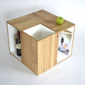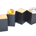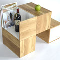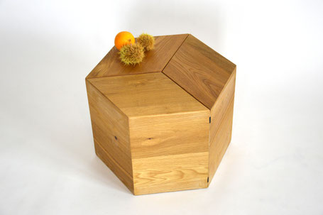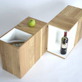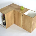 Aussenseitig Eiche lackiert, innenseitig MDF schwarz
