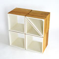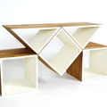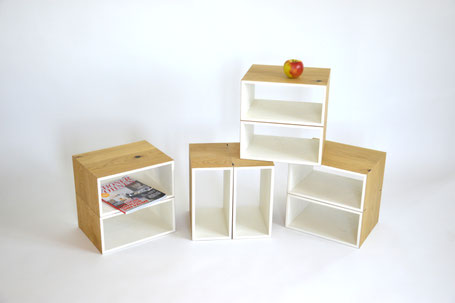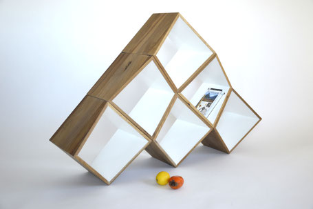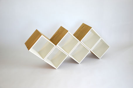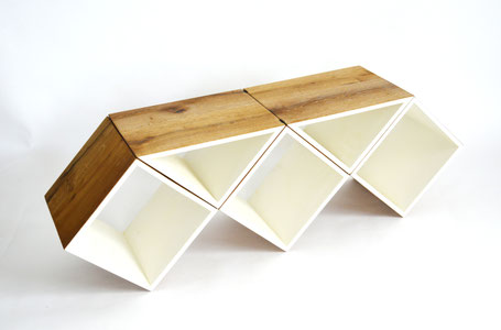 Zwei dreier Module mit abgeschrägten Fronten ergeben diesen einzigartigen Monolith.